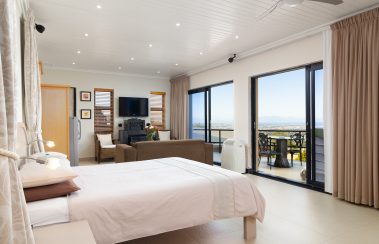 The spacious open plan suite boasts a full length patio with gas BBQ and magnificent views of the whole of the Constantia Valley, looking over the sea towards False Bay – completing the perfect place to stay when visiting Cape Town.